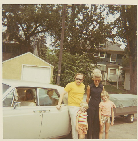 Mom, Dad, and sister Debbie on a road trip to Minneapolis |